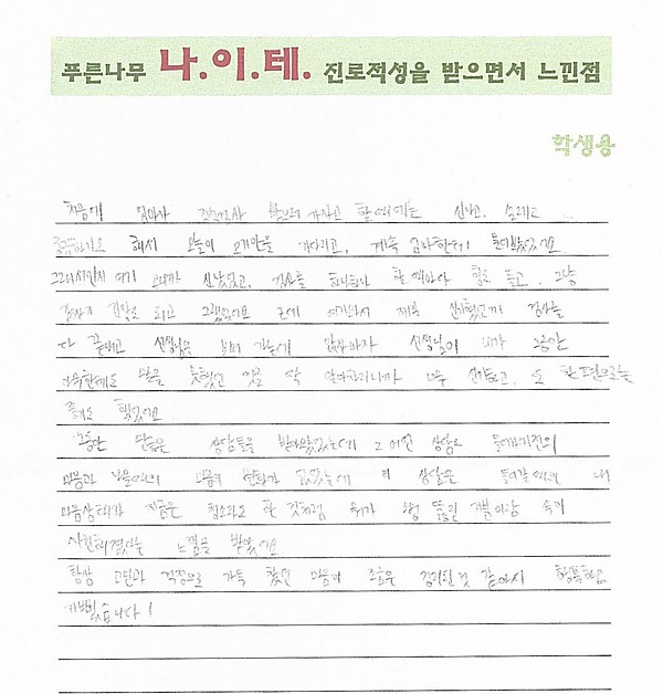 처음에 엄마가 적성검사 받으러 가자고 할 때에는 신나고, 설레고
