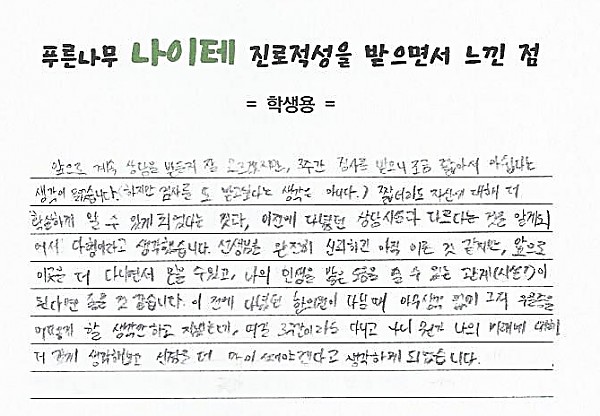 생각이 들었습니다. (하지만 검사를 또 받고 싶다는 생각은 아니다.) 짧더라도 자신에 대해 더