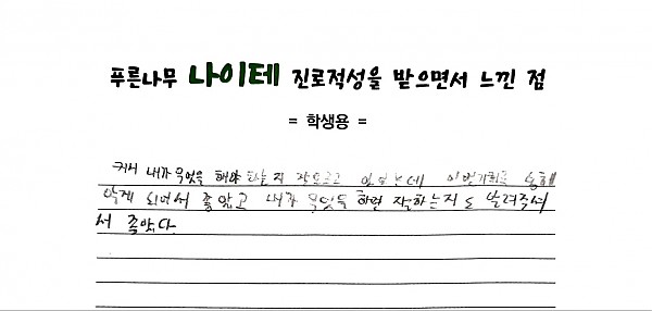 커서 내가 무엇을 해야 하는지 잘 모르고 있었는데, 이번 기회를 통해 알게 되어서 좋았고 내가 무엇을 하면 잘하는지도 알려주셔서 좋았다.