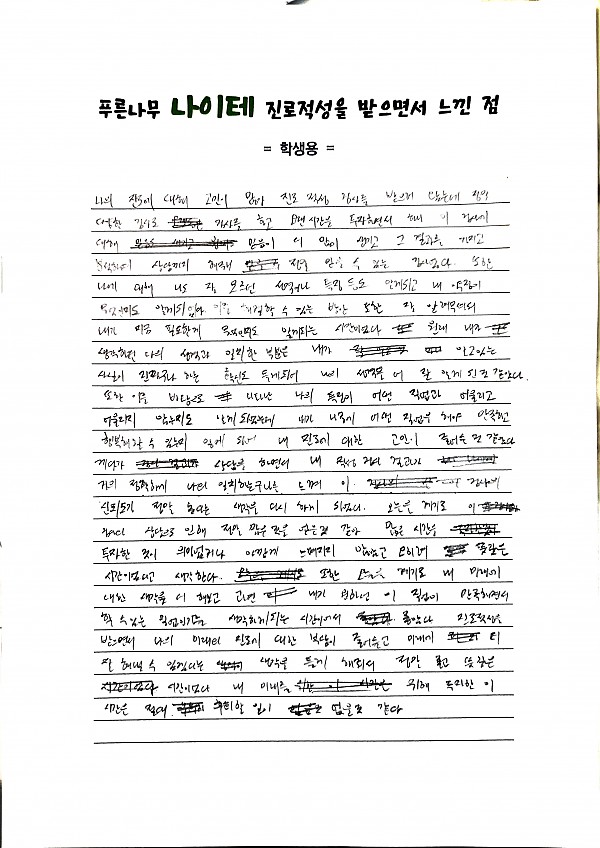 나의 진로에 대해 고민이 많아 진로 적성 검사를 받으러 왔는데 정말 다양한 검사로 검사를 하고 오랜 시간을 투자하면서 하니 이 검사에 대해 믿음이 더 많이 생기고 그 결과를 가지고 분석하여 상담까지 해주니 정말 믿을 수 있는 검사였다. 또한 나에 대해 나도 잘 모르던 성격이나 특징 등도 알게 되고, 내 약점이 무엇인지도 알게 되었다. 이를 해결할 수 있는 방안 또한 잘 알려주셔서 내가 지금 필요한 게 무엇인지도 알게 되는 시간이었다. 원래 내가 생각하던 나의 성격과 일치한 부분은 '내가 알고 있는 사실이 진짜구나' 하는 확신도 들게 되어 나의 성격을 더 잘 알게 된 것 같았다. 또한 이를 바탕으로 나타난 나의 특징이 어떤 직업과 어울리고 어울리지 않는지도 알게 되었는데 내가 나중에 어떤 직업을 해야 만족하고 행복해 할 수 있는지 알게 되어 내 진로에 대한 고민이 줄어든 것 같았다. 게다가 상담을 하면서 내 적성 검사 결과가 거의 정확하게 나와 일치하는 구나를 느껴 이 검사의 신뢰도가 정말 높다는 생각을 다시 하게 되었다. 오늘을 계기로, 이 검사의 상담으로 인해 정말 많은 것을 얻은 것 같아 많은 시간을 투자한 것이 의미 없거나 아깝게 느껴지지 않았고 오히려 뜻 깊은 시간이었다고 생각한다. 또한 오늘을 계기로 내 미래에 대한 생각을 더 해보고 과연 내가 원하던 이 직업이 만족하면서 할 수 있는 직업인지를 생각하게 되는 시간이어서 좋았다. 진로 적성을 받으면서 나의 미래의 진로에 대한 부담이 줄어들고 미래에 더 잘 해낼 수 있겠다는 생각이 들게 되어서 정말 뜻 깊은 시간이었다. 내 미래를 위해 투자한 이 시간은 절대 후회할 일이 없을 것 같다.